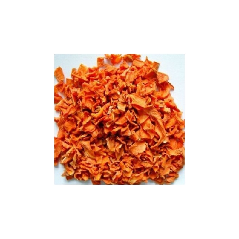 Carottes déshydratées sous forme de flocons pour l'alimentation des animaux. Carton de 20 kg