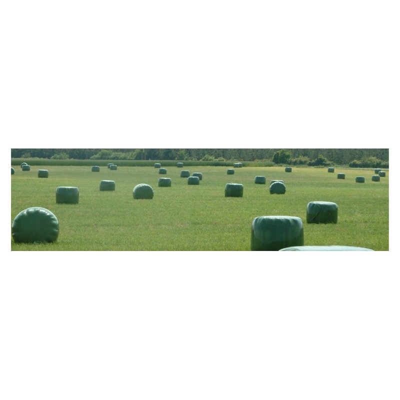 Avantages : Film de très haute qualité co-extrudé multi-couches. Sa parfaite élasticité, sa très grande résistance à l’étirement, ainsi que son excellente adhésivité permettront un enrubannage efficace. Caractéristiques : Mandrin en plastique. Protection anti-UV : 12 mois. 100 % recyclable. Couleur : vert clair. Epaisseur : 25 µm. Mode d’emploi : Enrubanner dans les 2 heures qui suivent le pressage. Monter à 6 couches pour avoir une barrière optimale contre l’oxygène. Le recouvrement doit être de 50% de la largeur du film.